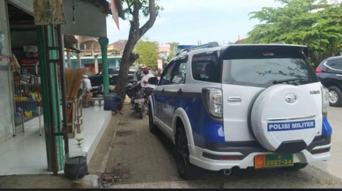 Personel gabungan TNI-Polri berjaga di sekitar rumah orang tua Kopda Muslimin. Lokasi tersebut berada di Kelurahan Trompo, Kecamatan Kota Kendal. (Foto: Dimas Saktyo R./detikJateng)