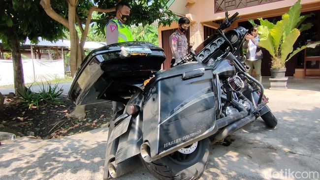 Kecelakaan ini melibatkan satu unit motor Harley Davidson bernomor polisi D 2525 DE dan sebuah motor matik Honda Beat nomor polisi AB 3701 AQ. Foto: Jalu Rahman Dewantara/detikJateng