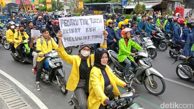 Semarang - Massa demo BBM naik di Semarang, Jawa Tengah, memanas sore hari ini, Kamis (8/9/2022). Mereka berusaha untuk masuk ke kantor Gubernur Jateng, Ganjar Pranowo.