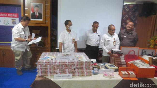 Yogyakarta - Barang bukti uang Rp 12 miliar sitaan Kanwil DJP DIY atas kasus laporan SPT Pajak yang dihadirkan dalam pers rilis, Kamis (22/9/2022). Simak berikut ini.