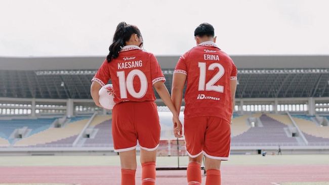 Solo - Erina Gudono memposting foto 'prewedding' bersama Kaesang Pangarep. Erina dan Kaesang kompak memakai jersey Persis Solo warna merah di Stadion Manahan, Solo.