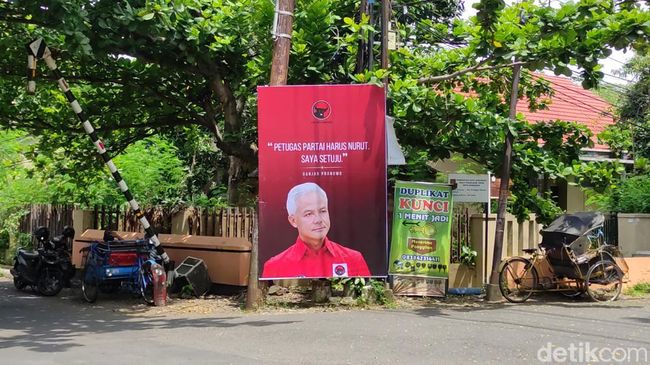 Semarang - Baliho berwarna merah dengan foto Ganjar Pranowo terpasang di beberapa titik di Kota Semarang. Baliho itu bertuliskan 'Petugas Partai Harus Nurut, Saya Setuju'.