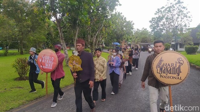 Magelang - Memperingati hari Wayang Nasional yang jatuh pada 7 November ini, puluhan wayang diarak berkeliling Candi Borobudur, Magelang. Simak potretnya di sini.