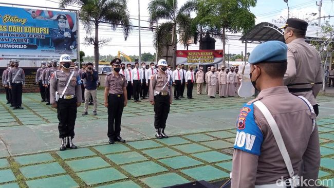 Upacara Pemberhentian Tidak Dengan Hormat (PTDH) Aipda Aziz di Mapolres Purworejo dipimpin oleh Kapolres Purworejo AKBP Muhammad Purbaja, Selasa (8/11/2022). Foto: Rinto Heksantoro/detikJateng