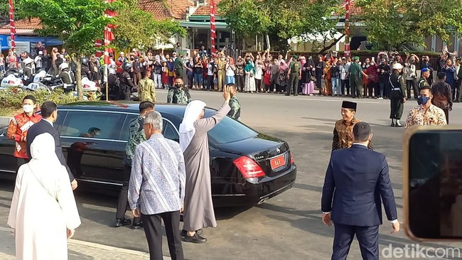 Potret Jokowi-Presiden UEA Semobil Saat Tiba di Masjid Sheikh Zayed Solo
