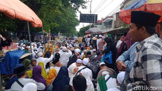Ribuan peserta Haul ke-111 Habib Ali bin Muhammad Al Habsyi memenuhi lokasi di Pasar Kliwon, Solo, Selasa (15/11/2022). Beberapa ruas jalan di sisi selatan lokasi, Masjid Ar Riyadh di Jalan Kapten Mulyadi padat. Foto: Achmad Hussein Syauqi/detikJateng