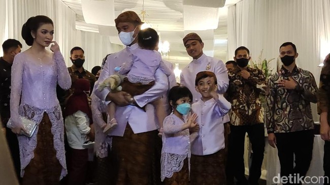 Sleman - Cucu Presiden Jokowi, Jan Ethes Srinarendra dan Sedah Mirah, turut menghadiri midodareni Erina Gudono calon istri Kaesang. Berikut momen kompak keduanya.