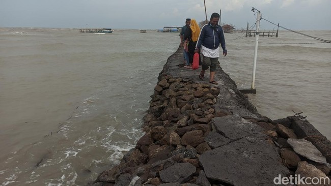 Jalan Menuju Makam 'Terapung' Syekh Mudzakir Demak Putus Diterjang Ombak