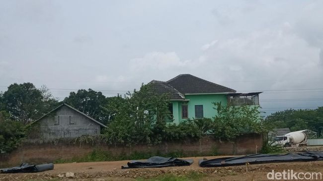 Rumah bercat hijau milik Setyo Subagyo itu belum tersentuh proyek tol Jogja-Solo, sementara rumah lainnya telah rata dengan tanah. Foto: Achmad Hussein Syauqi/detikJateng