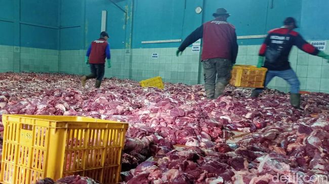 Banjarnegara - Ruang aula di Dusun Krajan, Desa/Kecamatan Batur, Banjarnegara hari ini bak lautan daging. Satu ruangan penuh dengan daging kurban seberat 25 ton. Ini potretnya