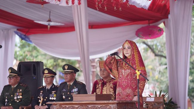 Klaten - Bupati Klaten Sri Mulyani memimpin upacara Hari Ulang Tahun (HUT) ke-78 Republik Indonesia di Alun-Alun Klaten hari ini. Sederet prestasi dipaparkan.
