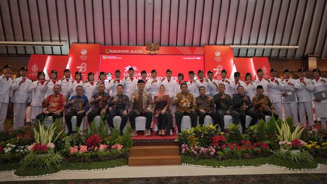 Klaten - Pemkab Klaten menggelar malam resepsi HUT ke-78 RI di Pendopo Agung Klaten, Kamis (17/8) malam. Kegiatan ini wujud syukur rangkaian HUT ke-78 RI di Klaten.
