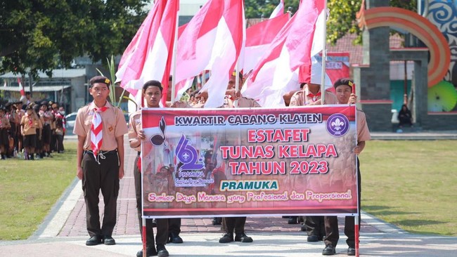 Solo - Pemerintah Kabupaten Klaten memperingati Hari Pramuka dengan melaksanakan upacara di di Alun-Alun Klaten, Kamis (24/8/2023).