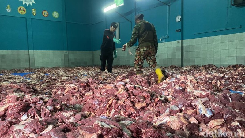 Tumpukan daging kurban memenuhi ruangan dengan ukuran 18 meter x 10 meter hasil penyembelihan daging kurban tahun ini. Dari 344 hewan kurban tersebut dikemas menjadi 8 ribu bungkus. Daging kurban ini kemudian dibagikan kepada warga setempat dan warga dari luar desa.