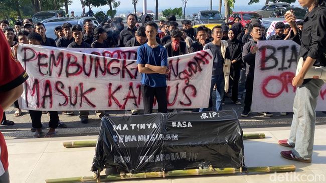Semarang - Mahasiswa UIN Walisongo Semarang menggelar demo di kampusnya sore ini. Mereka menyoroti kenaikan UKT hingga kewajiban bayar Mahd Rp 4 juta.