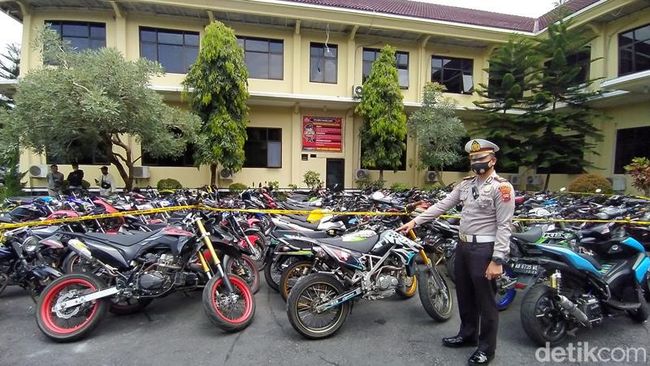 Polres Magelang menyita 121 sepeda motor dari berbagai jenis yang digunakan untuk balapan liar. Sepeda motor tersebut disita saat akan digunakan balapan liar di kawasan Metro Square, Mertoyudan, Kabupaten Magelang.