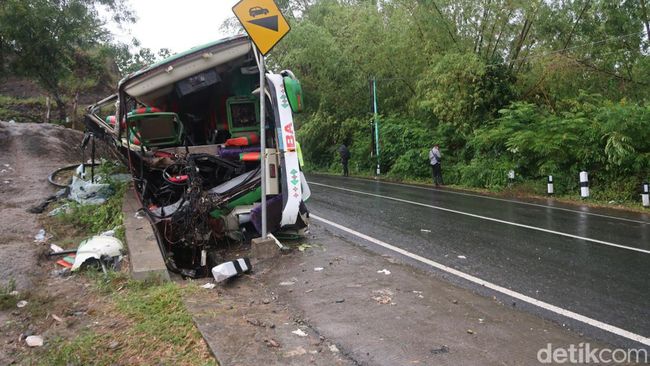 Dari pantauan detikJateng di lokasi, bodi sisi kanan dari bus pariwisata bernama GA Trans dan bernopol AD 1507 EH itu menabrak tebing di Bukit Bego. Sedangkan kaca bagian depan pecah, beberapa kursi tampak hancur.