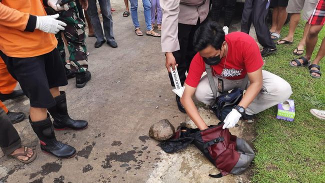 Saat ditemukan, mayat tersebut juga menggendong tas warna merah yang berisi dua batu dengan berat sekitar 5 kilogram.