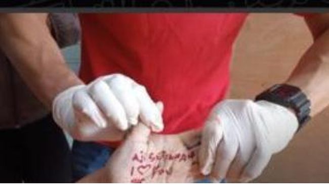 Seakan memiliki firasat buruk, korban sempat menuliskan nama pelaku di telapak tangan kirinya. Tulisan berwarna merah terdiri dari 2 deret: 'Aji Setiawan I (tanda hati) you'.