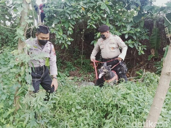 Polisi menerjunkan anjing pelacak pada Sabtu (26/3) siang. Tim gabungan dipimpin oleh Kanit Resmob Satreskrim Polres Klaten, Ipda Ardi Nugraha Putra.