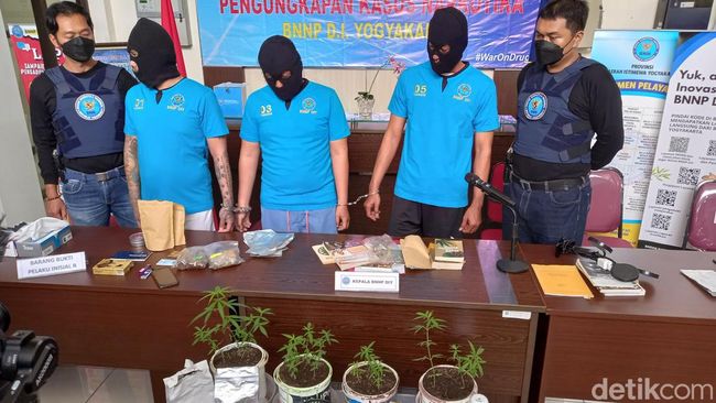Badan Narkotika Nasional Provinsi (BNNP) DIY mengamankan tiga orang terkait kasus ganja. Salah satunya berpendapat bisa melegalkan ganja sampai meneliti dengan menanam ganja menggunakan pot sejumlah 13 batang.