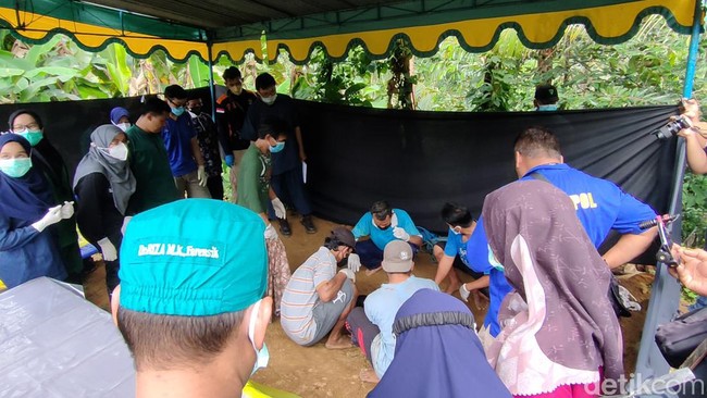 Selain olah TKP, polisi juga membongkar makam korban di TPU Ngede, Kelurahan Hargomulyo, pada Kamis (12/5). Jenazah korban diautopsi oleh tim forensik dari RS Bhayangkara Polda DIY.
