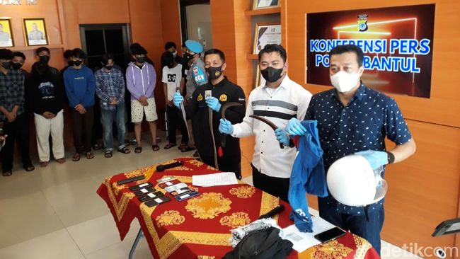 "Sebagian besar berstatus pelajar dan sekolahnya di salah satu sekolah menengah atas di (Kapanewon) Kretek. Untuk barang bukti kami amankan 8 unit motor, 8 unit smartphone, beberapa potong pakaian, sebilah celurit dan satu gir modifikasi," ujarnya.