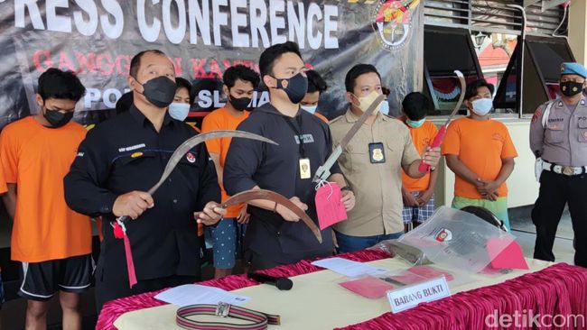 Polres Sleman menangkap sekelompok pemuda dan remaja pelaku pembacokan di kawasan Tridadi, Sleman. Dalam peristiwa yang terjadi pada Senin (6/6), 4 orang terluka akibat pembacokan itu.