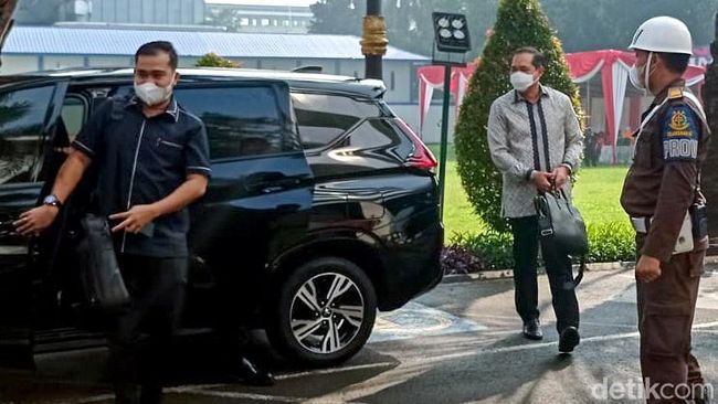 Lutfi tiba di halaman gedung Kejagung sekitar pukul 09.10 WIB. Dia mengenakan baju batik sambil menenteng tas warna hitam.