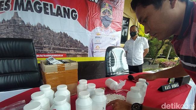 Tersangka yang merupakan warga Kecamatan Srumbung, Kabupaten Magelang ditangkap pada Rabu (1/6). Rincian barang bukti yang diamankan dari tangan tersangka yakni 12 toples masing-masing berisi 1.000 butir sehingga seluruhnya 12.000 butir pil sapi.