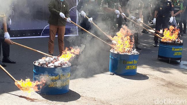 Pemusnahan rokok itu dilakukan di halaman Kantor Gubernur Jateng. Secara simbolis rokok itu dimusnahkan dengan cara dibakar. Sedangkan, sisanya dibuang ke TPA Jatibarang dengan dibawa menggunakan 7 truk.