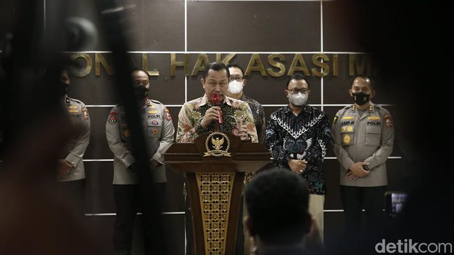 Ketua Komnas HAM Ahmad Taufan Damanik mengungkapkan hasil pemeriksaan pihaknya terhadap Bharada Richard Eliezer (RE atau E). Saat diperiksa Komnas HAM, Bharada E mengaku eks Kadiv Propam Polri Irjen Ferdy Sambo menembak Brigadir Nopriansyah Yoshua Hutabarat atau Brigadir J sebanyak dua kali.