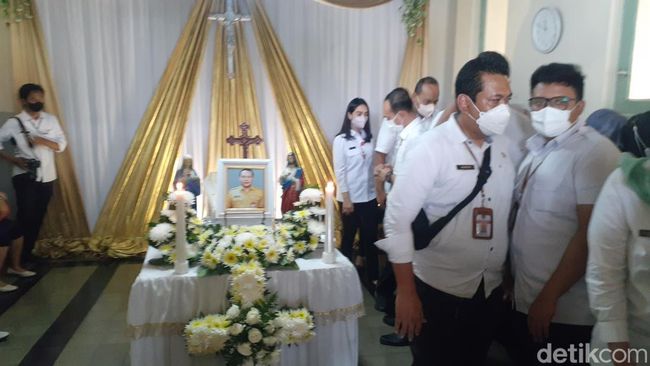 Doa dipimpin oleh Romo Aloysius Budi Purnomo, Rabu (21/9/2022). Suasana haru menyelimuti proses doa bersama. Tampak keluarga menangis dan memeluk peti jenazah Iwan.