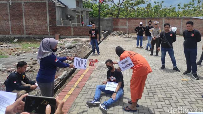 Dalam rekonstruksi itu, dari lima tersangka yang telah ditetapkan ada satu orang yang tidak hadir dan digantikan peran pengganti.