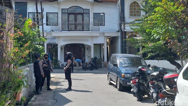 Saat ini, polisi berjaga di rumah kontrakan terduga teroris di Dukuh Ngruki, RT 01 RW 16. Penjagaan ketat dilakukan oleh petugas kepolisian.