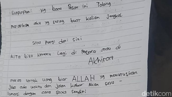 Berikut isi lengkap surat yang ditemukan polisi: