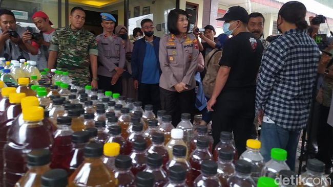 Di rumah ATP polisi menemukan 223,5 liter minuman keras, sedangkan di rumah REH polisi menemukan 277,5 liter miras.