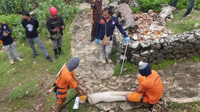 "Karena pada saat dibunuh belum sepenuhnya meninggal, lalu ada upaya pelaku saat mengangkat itu ada tangga dan sengaja badan korban diturunkan agar terbentur-bentur lalu digulingkan (dari tebing)," imbuh Dewo.