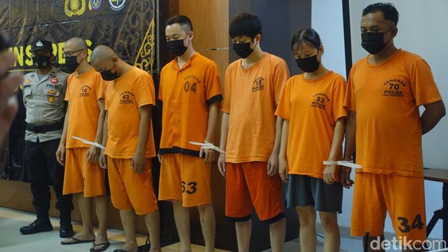 Enam tersangka yang ditangkap yakni pria inisial AW dan NL warga Surabaya, DT alias A warga Kalimantan Barat. Kemudian perempuan inisial VN warga Sumatra Selatan. Selain itu ada dua WNA Taiwan yakni pria inisial ZQB dan YSX.