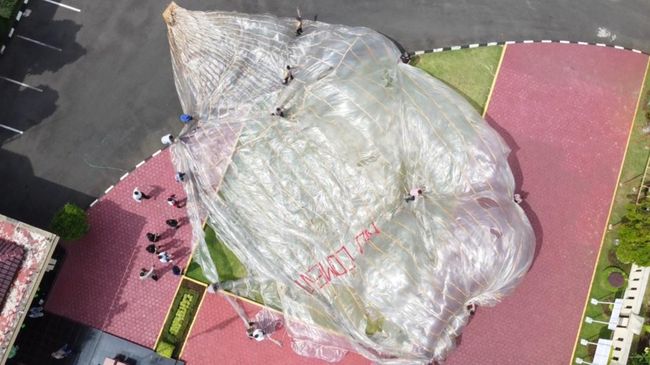 Butuh belasan anggota polisi untuk membentangkan balon udara itu di halaman Mapolres Pekalongan. Saat melipat kembali balon udara raksasa itu petugas juga cukup kesulitan, karena ukurannya yang sangat besar. Menurut informasi, balon dari plastik ini dibuat oleh warga setempat selama kurang lebih 15 hari.