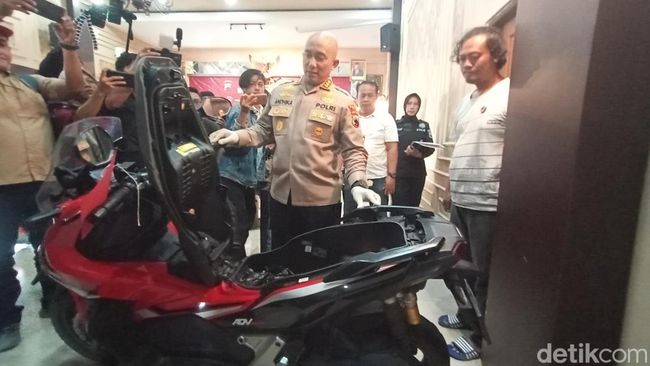 Kendaraan sepeda motor itu pun sempat dihadirkan saat konferensi pers ungkap kasus di Polresta Pati, Rabu (4/5). Motor itu berwarna merah hitam.
