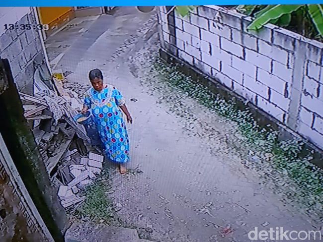 Dalam rekaman CCTV itu terlihat seorang emak-emak membawa baskom yang diduga berisi air kencing. Isi baskom tersebut kemudian dia siramkan ke depan pintu rumah tetangganya.