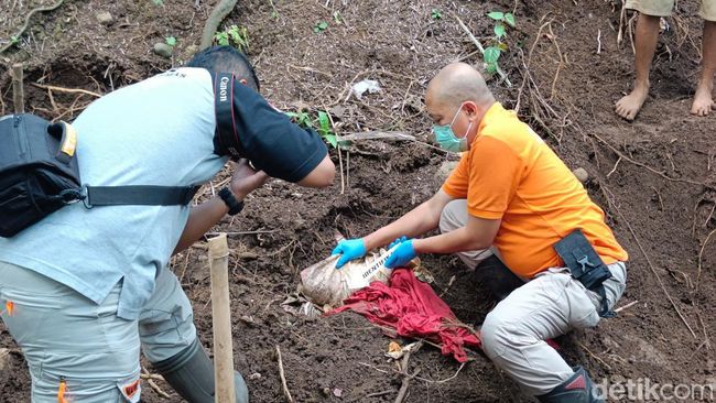 "Kondisi saat ditemukan terbungkus kain warna merah. Kondisinya sudah berserakan. Kedalamannya sekitar 30 cm," jelasnya.