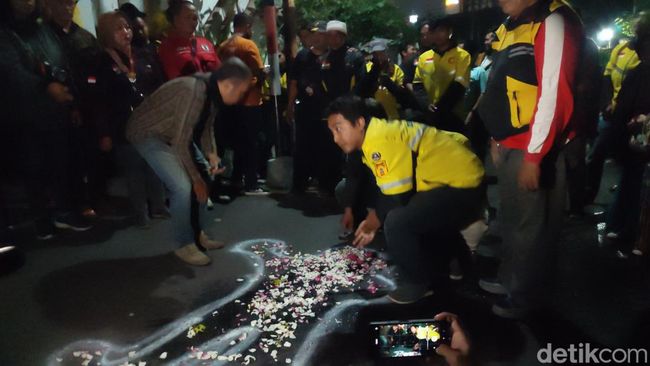 Usai pembacaan doa, acara dilanjutkan dengan tabur bunga di lokasi tewasnya Fauzy yang sudah diberi tanda putih. Keluarga diberi kesempatan pertama untuk menaburkan bunga dan dilanjutkan oleh rekan-rekan korban.