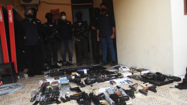 Selain itu, belasan pucuk senjata disita dari rumah DE.