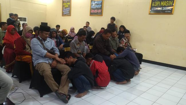 Para pelajar diminta untuk meminta maaf sambil berlutut kepada masing-masing orang tuanya. Sebagian remaja tersebut tampak menangis menyesali perbuatannya. Bahkan beberapa orangtuanya, turut menangis sambil menasehati anaknya.