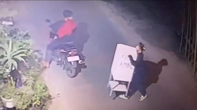 Terdapat dua video yang beredar di media sosial. Di video pertama terlihat seorang perempuan menggotong kotak amal warna putih menuju motor yang sedang ditumpangi seorang pria. Mereka kemudian pergi.