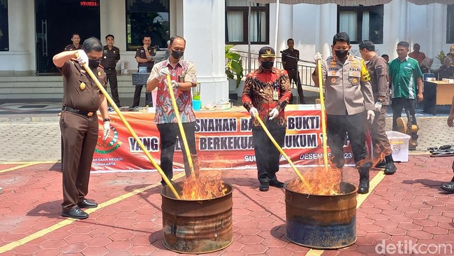 Kepala Kejari Solo, DB Susanto mengatakan, BB yang dimusnahkan dalam kegiatan hari ini berasal dari 138 perkara yang telah memiliki kekuatan hukum tetap periode bulan Juli-Desember 2023.