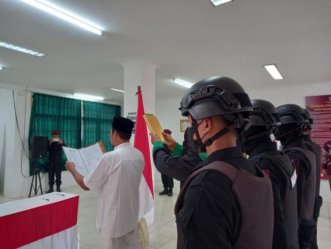 Seorang narapidana kasus terorisme (napiter) berinisial SYD menjalani prosesi pengucapan ikrar setia kepada Negara Kesatuan Republik Indonesia (NKRI) di Lembaga Pemasyarakatan (Lapas) Pasir Putih Nusakambangan, Cilacap.