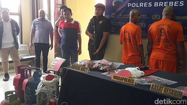 Polres Brebes, Jawa Tengah, membekuk dua pelaku pengoplos gas subsidi. Mereka dibekuk karena memindahkan atau menyuntik isi tabung gas melon 3 kg ke tabung gas 12 kg nonsubsidi.